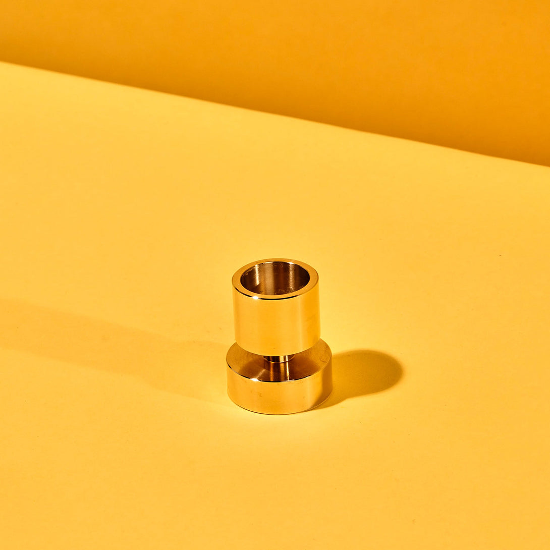 An elegant little candle holder, made of solid brass. Tiny but heavy and sturdy. Fits any standard 7/8" taper candle.