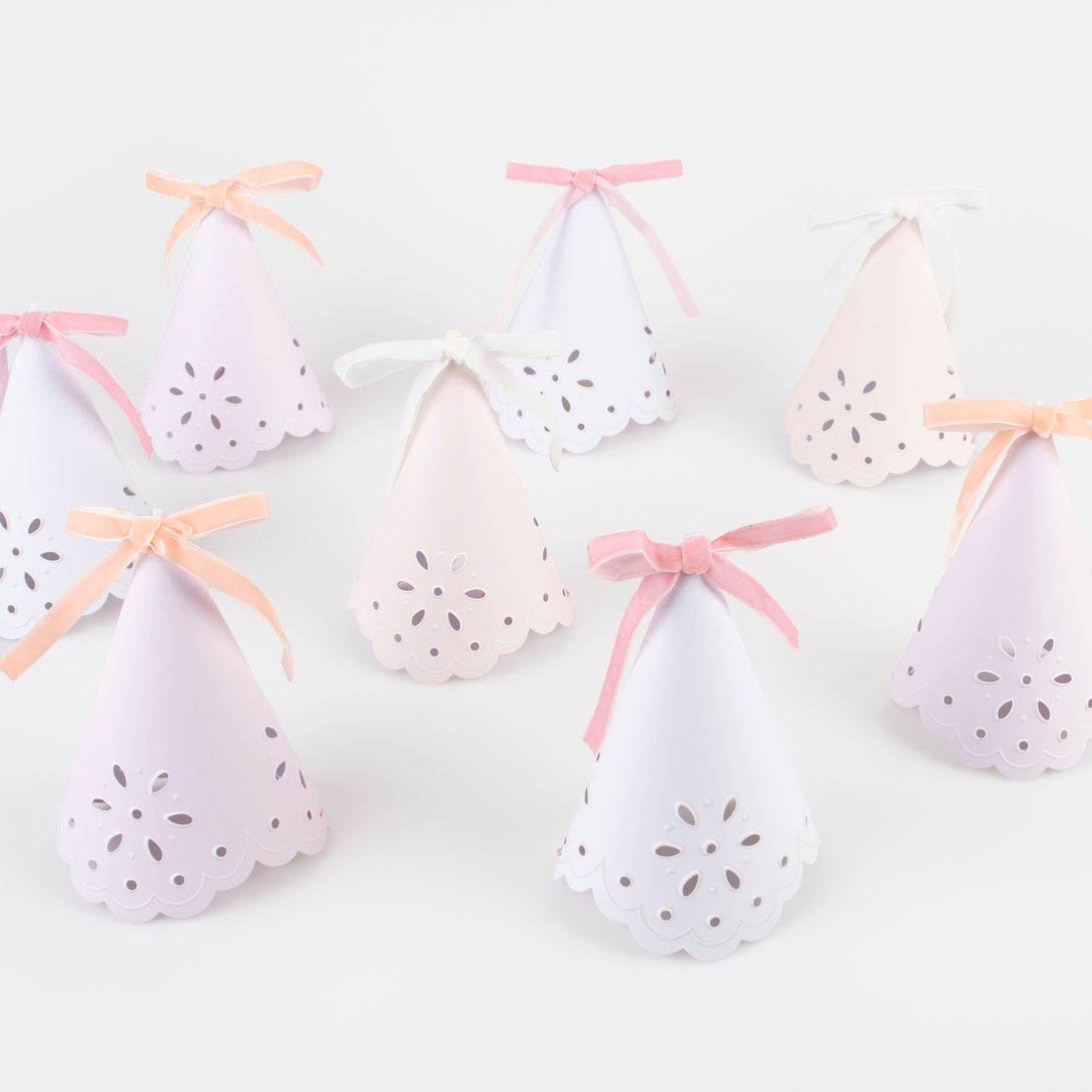 Make your guests look princess perfect with our luxury party hats with a stylish broderie anglaise design and soft velvet ribbons. Image2