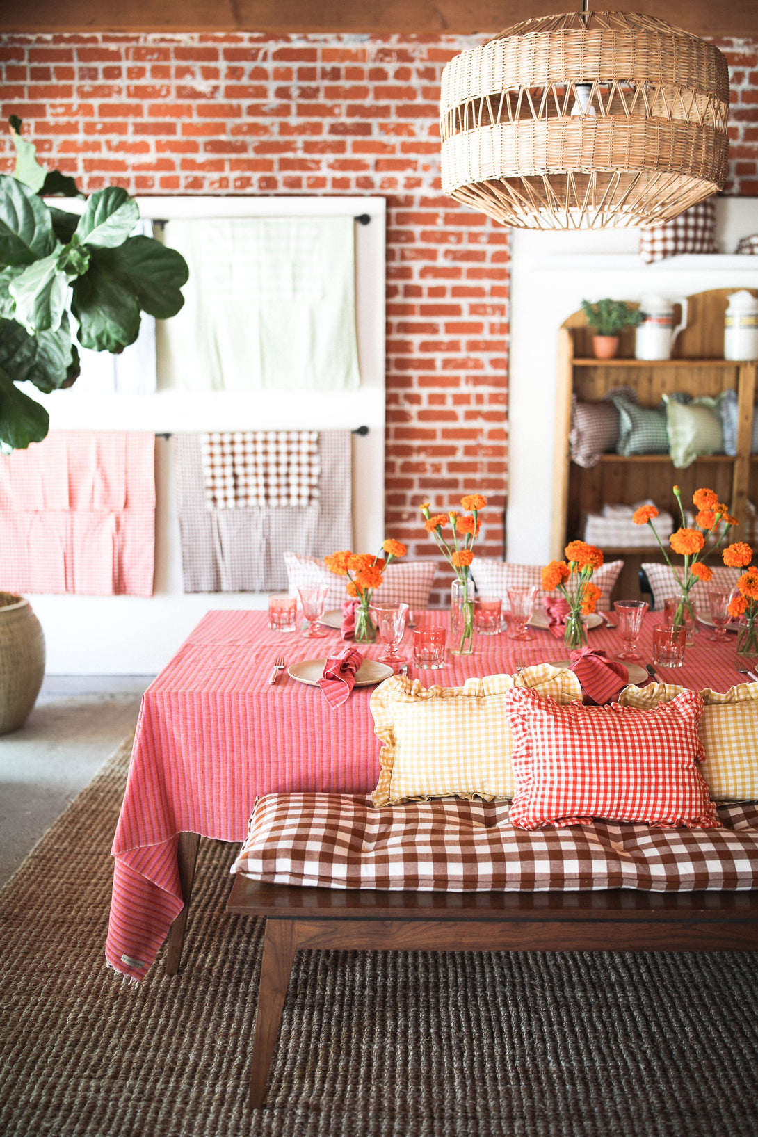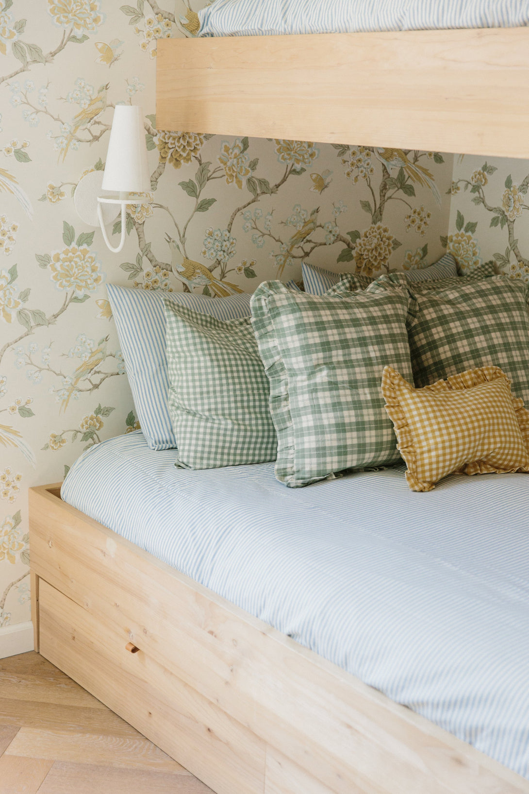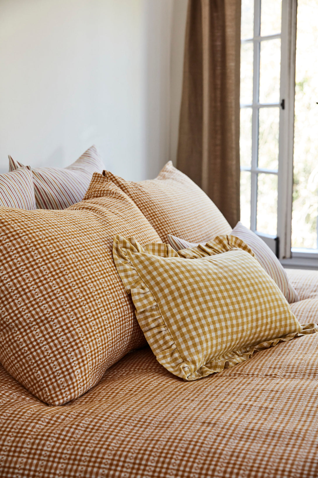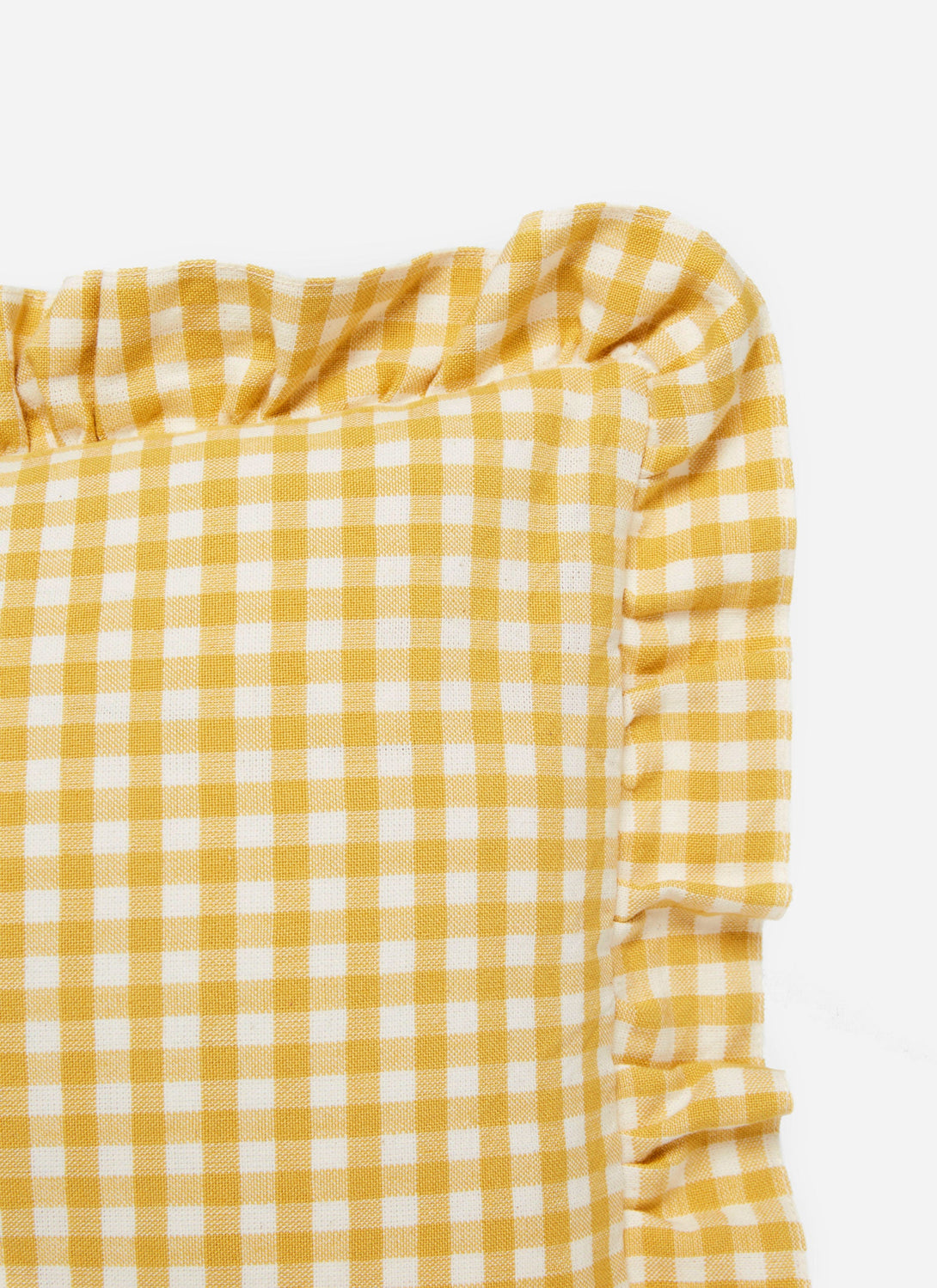 These pillow cases feature a classic ruffle edge with mini gingham patterns in sunflower yellow.