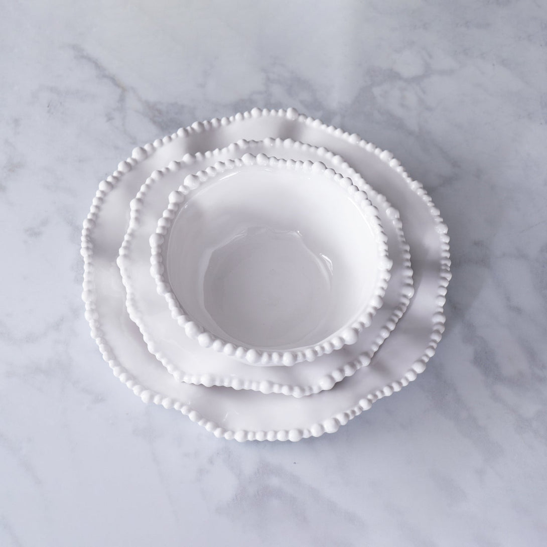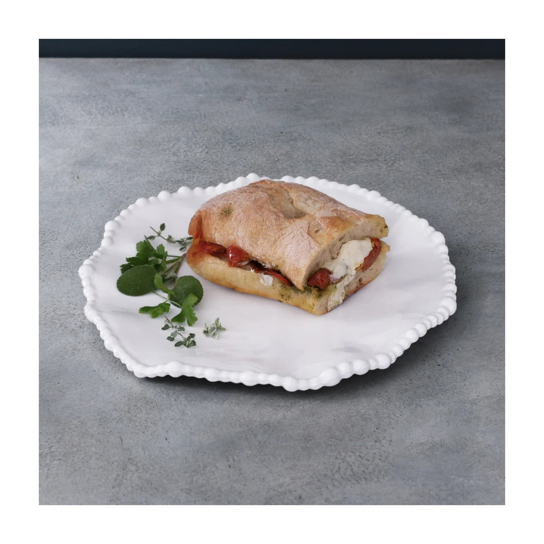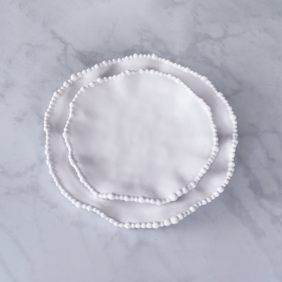 Make it a pleasure to set the table with the VIDA Alegria 9"salad plate in white; an essential item from Beatriz Ball's Alegria Collection of luxury melamine. With a charming pearl rim and a brilliant surface, the round salad plate may be paired with other white dining pieces--an 11" dinner plate and a cereal bowl--for a coordinated set. A table setting with a carefree and modern, Beatriz Ball twist! Perfect snack plate. It looks great when sharing a table with items from Beatriz Ball’s signature metal line, too. The plate has the luster, heft and look of a ceramic piece. Made of luxury melamine for everyday enjoyment, this piece is ideally suited for indoor and outdoor entertainment. Dishwasher safe (top rack), heavy-weight, food safe, BPA and PABA free.