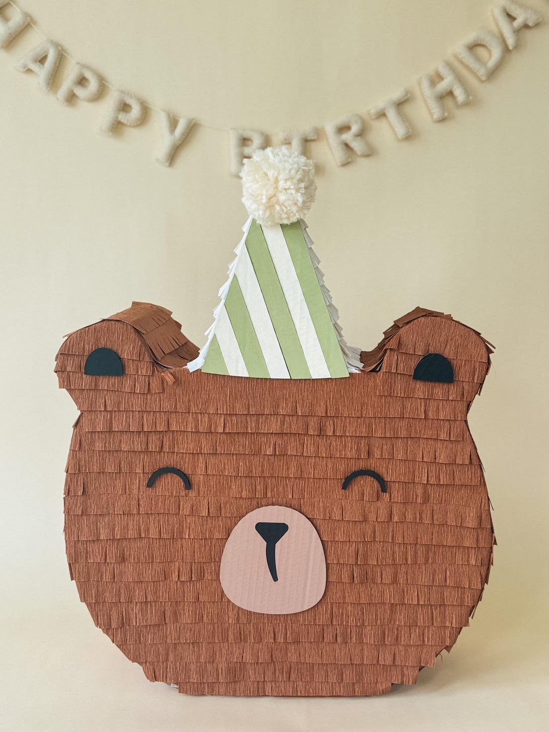 Adorable Bear Design: A lovable bear piñata with festive details, perfect for birthday themes, kids’ parties, and family gatherings.