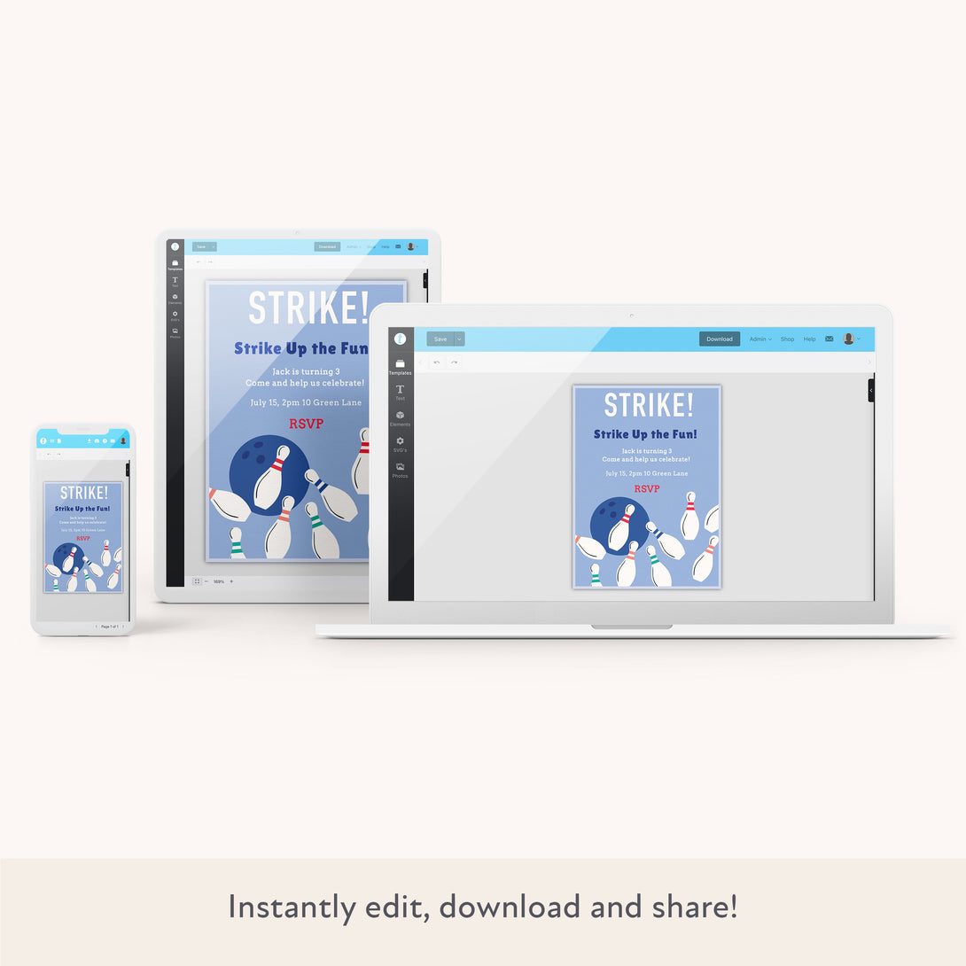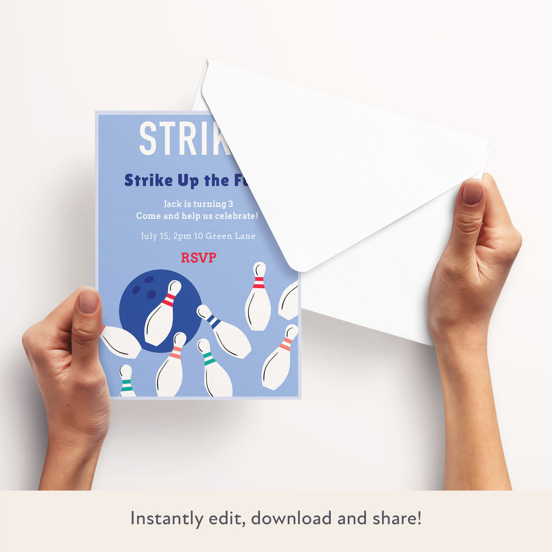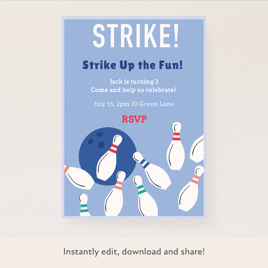 Strike up some fun with these bowling-themed invitations, perfect for sporty parties and pin-tastic celebrations. Simply add the details of your celebration, including the name, date, time and party address, to personalize it and make it truly unique.