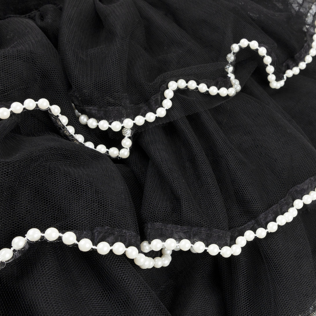 • The skirt is made with 3 layers of black tulle, with a polycotton lining, and 3 layers of white faux pearl trim