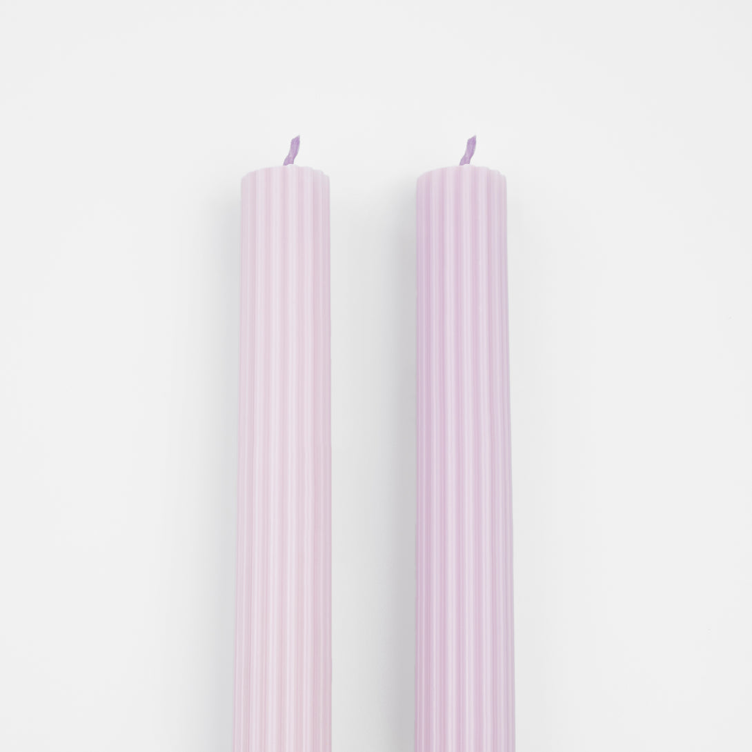 These striking lilac-colored candles have matching wicks with ridged details for an oh-so-stylish look. Use them to decorate your party table or mantel or give as a fabulous hostess gift.