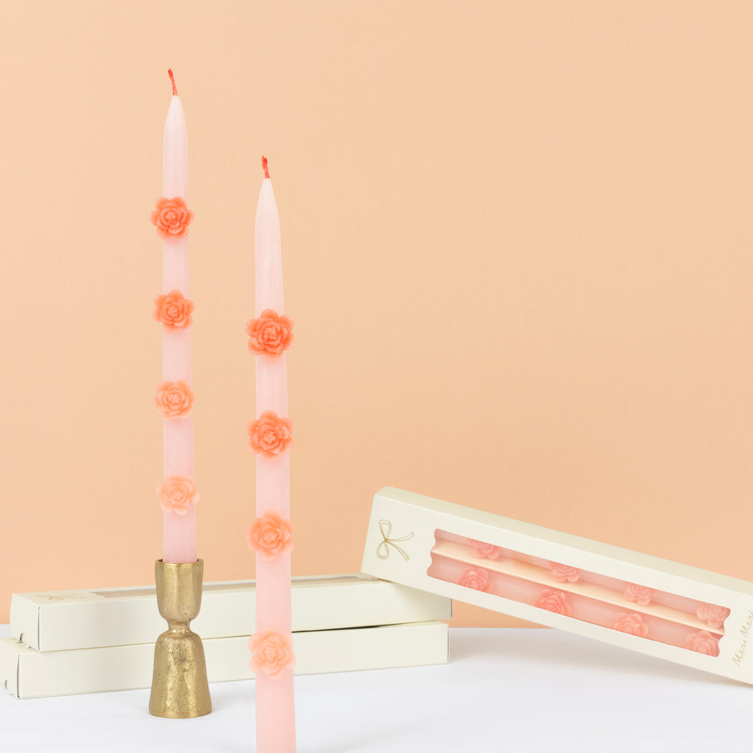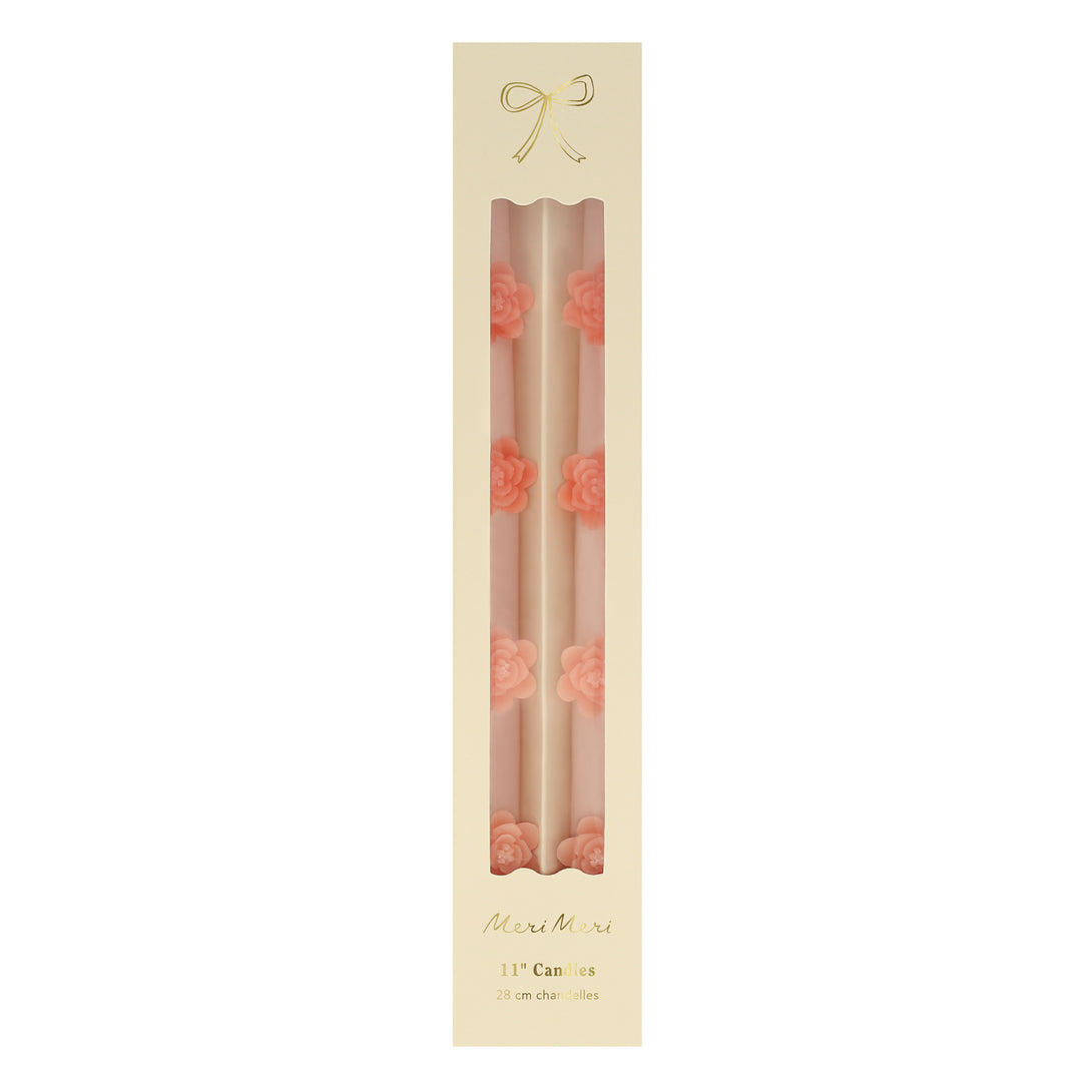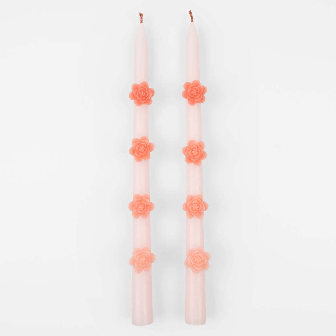 Pink Flower Taper Candles (x 2)