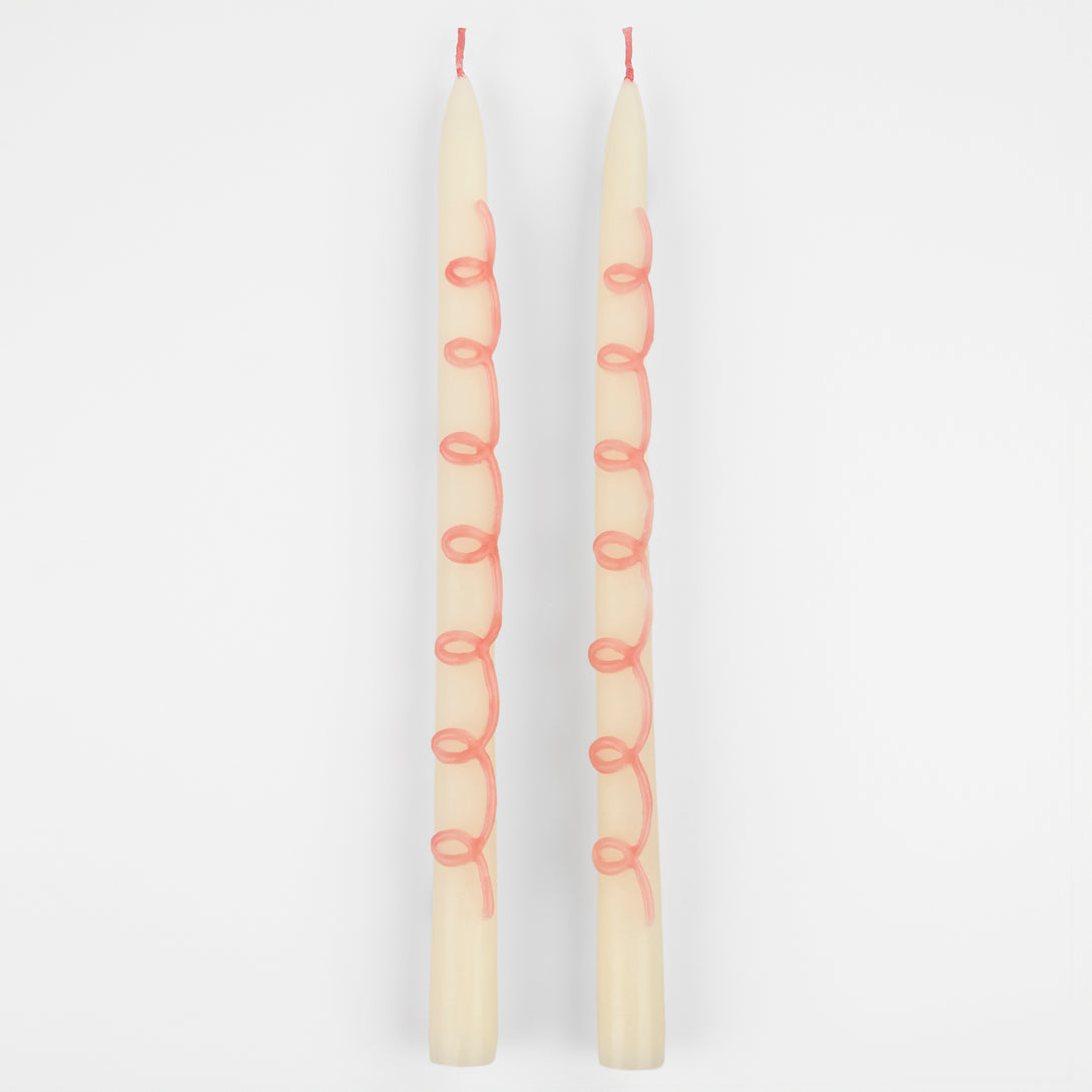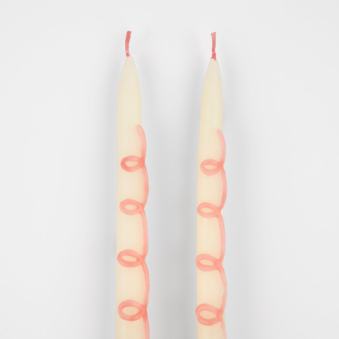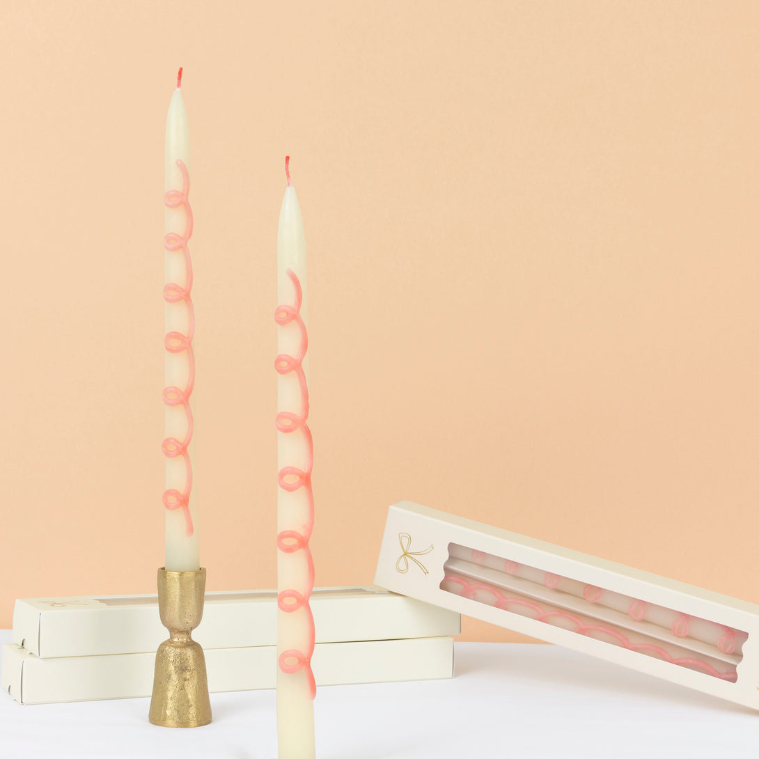 These tapered candles, with sensational swirls, have a special surprise detail - pink wicks! A wonderful hostess gift, or use to decorate the table or mantel at a party where pink will look just perfect, like a baby shower, bridal shower, princess or fairy party.