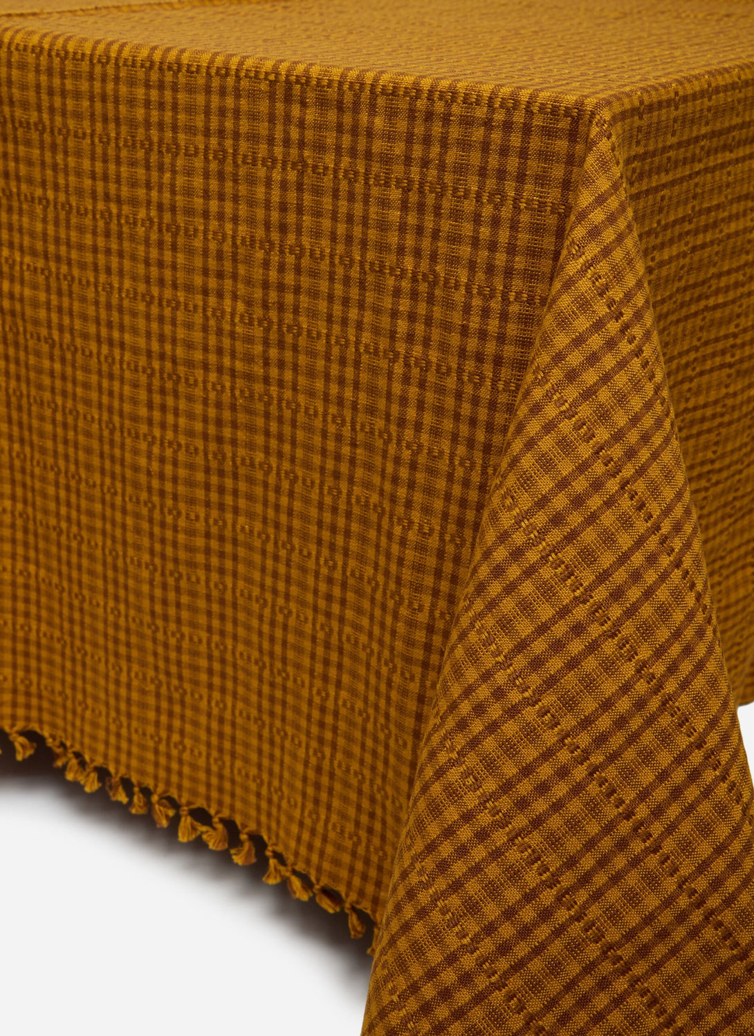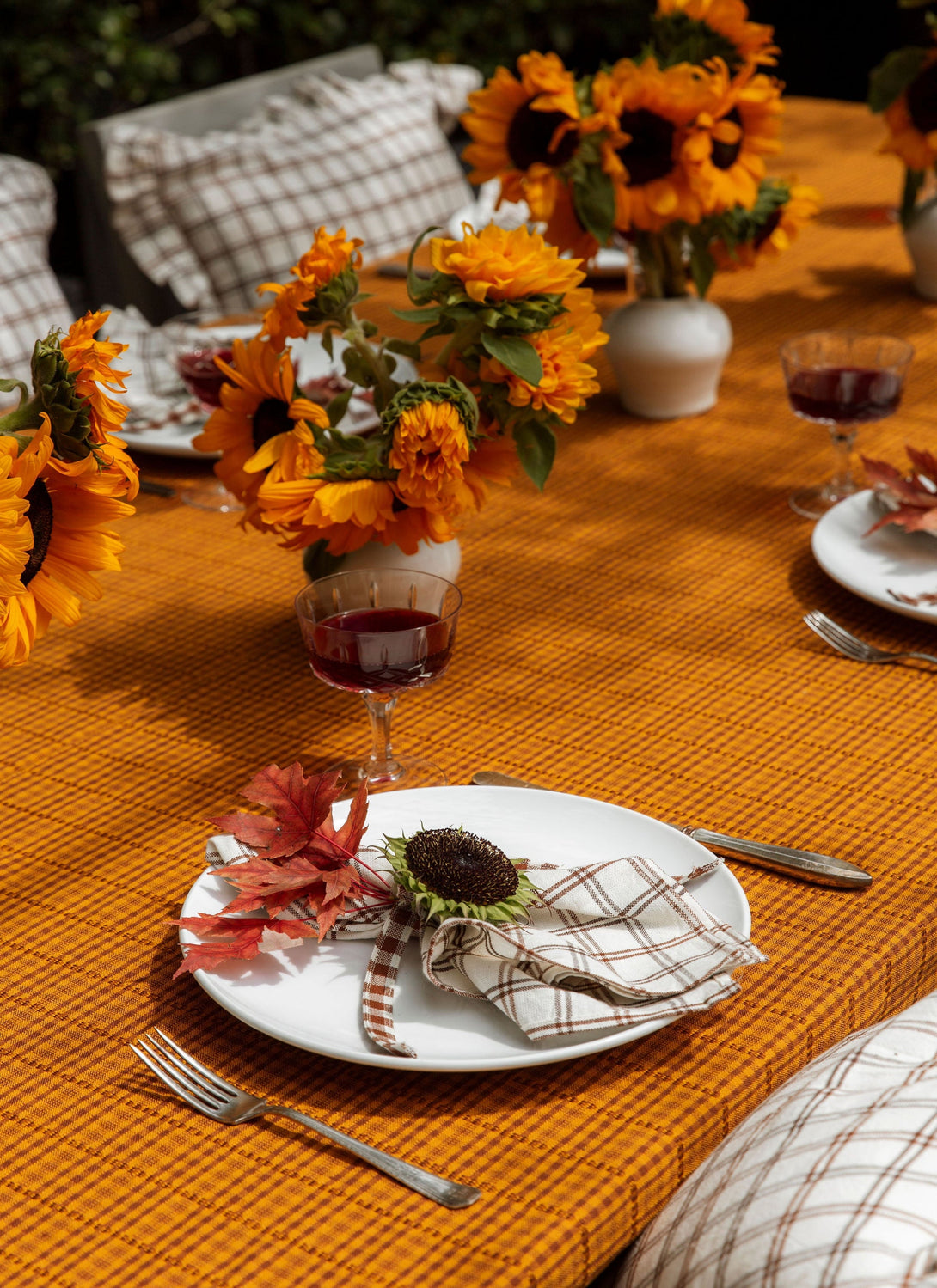DESIGNED IN COLLABORATION WITH NICKEY KEHOE. Made to love and to last, this tablecloth is a warm fall welcome to guests and happy home to hosting essentials. Whether you’re gathering to celebrate something special or for an everyday meal, opt for table linens that are thoughtfully made by hand.Our tablecloths are thoughtfully designed in Los Angeles, California and intricately handwoven from 100% cotton by artisans in Chiapas, Mexico. Featuring a decorative hand-stitched center seam, the heart of every Heather Taylor Home tablecloth sets a special table with stories of intention.– Small Tablecloth: 63″ wide x 72″ long– Large Tablecloth: 63″ wide x 120″ long– Material: 100% cottonTreat each piece with love and care to avoid wear and tear.Please pre-treat any stains. Hand wash or machine wash on the gentle or delicate setting with like colors in cold water. Do not use bleach. We recommend laying flat to dry as machine drying may cause minor shrinkage. Dry cleaning is optional but not necessary. Press with iron on low, if preferred, and enjoy cozier meals.