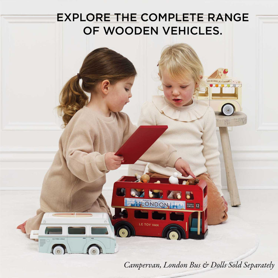 A fresh take on a classic, playtime doesn't get much sweeter than this miniature, doll sized ice-cream van. Painted in soft pink, grey and cream hues, this retro style toy is ready to roll off to mini adventures.